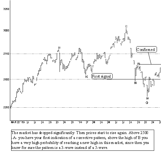 - A corrective pattern mostly minimally carries into