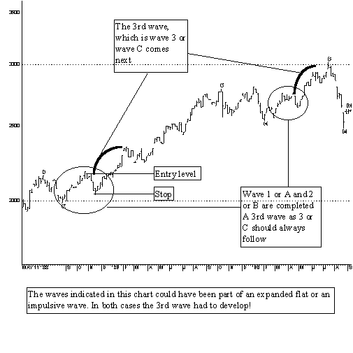 low it starts to rise. Wave 1 (or A) and wave 2 (or B) have